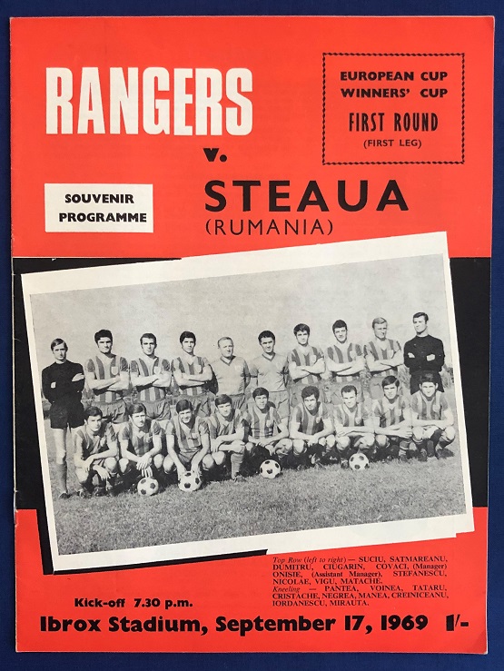 17th September 1969 – Rangers v Steaue Bucharest European Cup match played at Ibrox in front of 43,346. Rangers won the match 2-0 with Johnston scoring both goals.