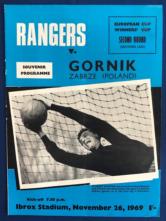 26th November 1969 – Rangers v Gornik Zabrze European Cup match played at Ibrox in front of 70,000. Baxter scored the only goal for Rangers in a 3-1 defeat.