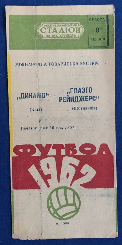 9th June 1962 – Dinamo Kiev v Rangers friendly match played at the Central Stadium in front of 60,000. The match ended in a 1-1 draw, with Brand scoring for Rangers.