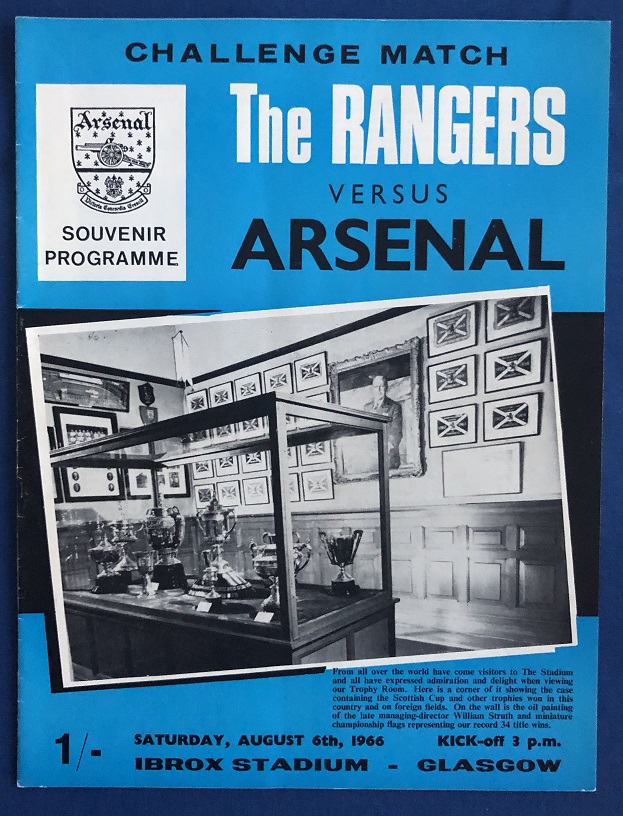 6th August 1966 – Arsenal v Rangers friendly match played at Highbury in front of a crowd of 40,000. Rangers won the match 2-0 with both goals scored by McLean.
