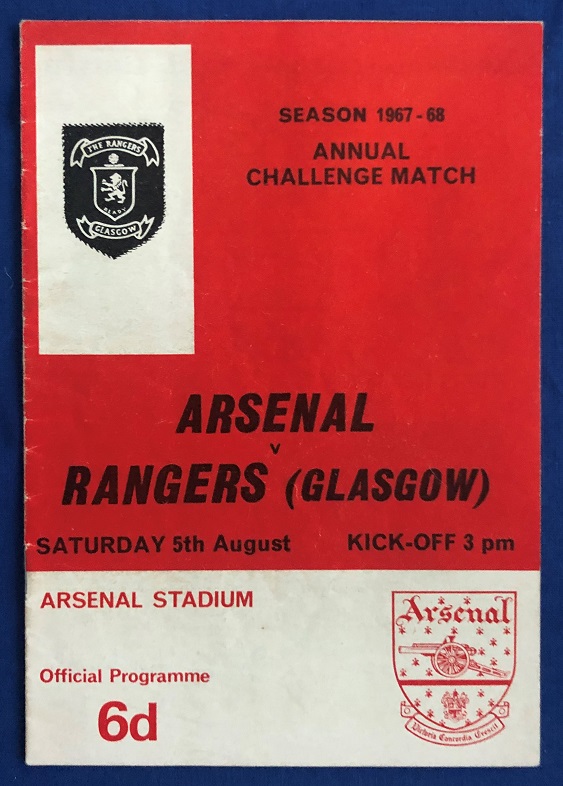 5th August 1967 – Arsenal v Rangers friendly match played at Highbury in front of a crowd of 34,586. Rangers lost the match 3-0.