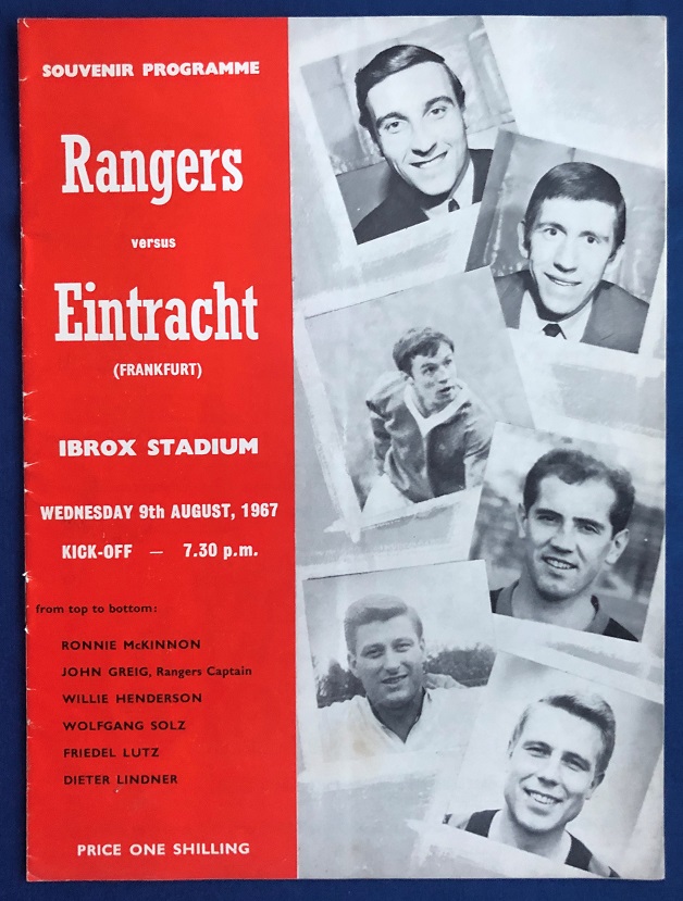 9th August 1967 – Rangers v Eintracht Frankfurt friendly match played at Ibrox in front of a crowd of 60,000. Rangers won the match 5-3, with Rangers goals scored by Ferguson (3), Penman & Persson.