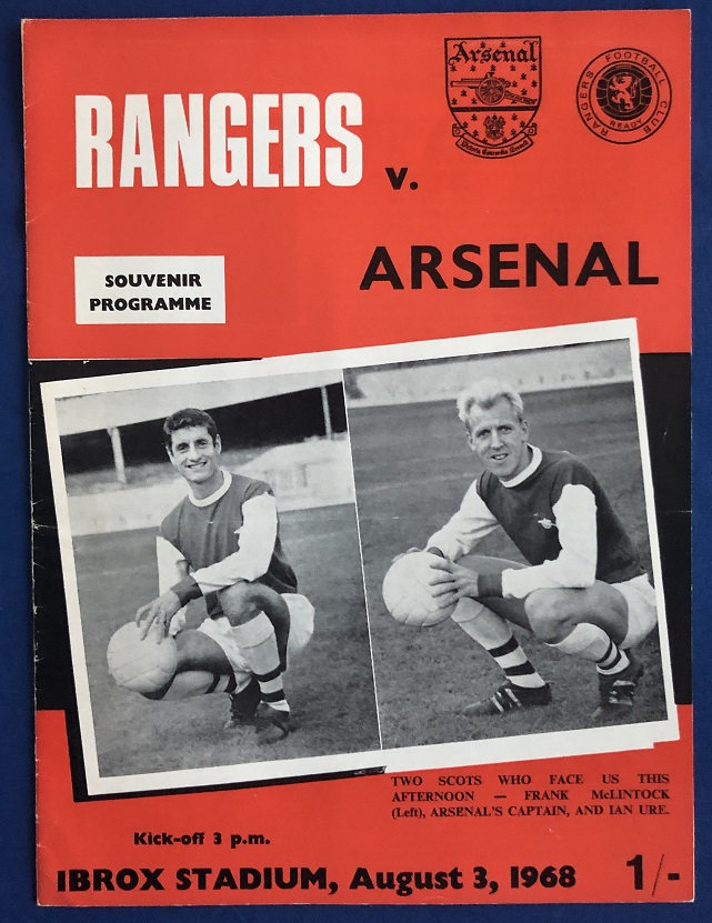 3rd August 1968 – Rangers v Arsenal friendly match played at Ibrox in front of 60,000. The match ended in a 2-2 draw with Greig & Penman scoring for Rangers.