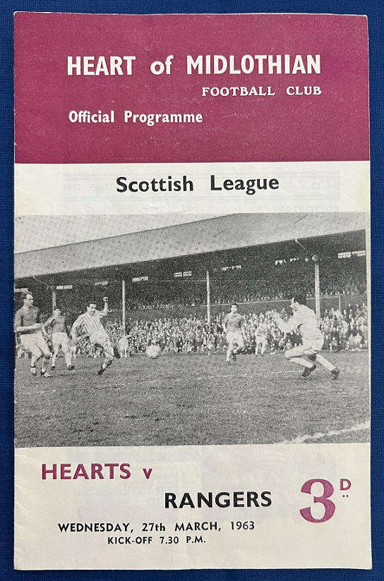 27th March 1963 – Hearts v Rangers Scottish League match played at Tynecastle in front of a crowd of 33,487. Rangers won the match 5-0, with goals from Millar (2), Wilson (2) & McLean.