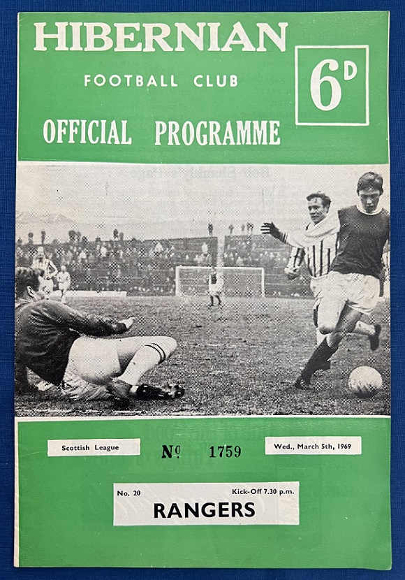 5th March 1969 – Hibernian v Rangers Scottish League match played at Easter Road in front of a crowd of 31,000. Rangers won the match 2-1 with goals from Greig & Johnston.
