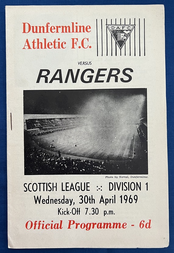 30th April 1969 – Dunfermline Athletic v Rangers Scottish League match played at East End Park in front of 11,700. Rangers won the match 3-0 with goals from Johnston (2) & Penman.