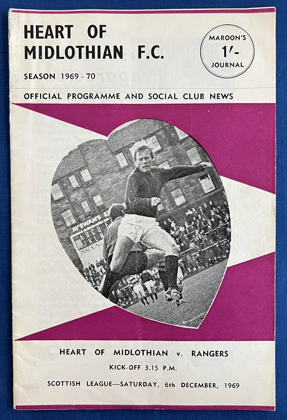 6th December 1969 – Hearts v Rangers Scottish League match played at Tynecastle in front of 28,956. Rangers won the match 2-1 with Stein & Johnston scoring.