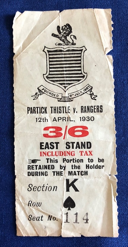 12th April 1930 – Partick Thistle v Rangers – Scottish Cup Final.