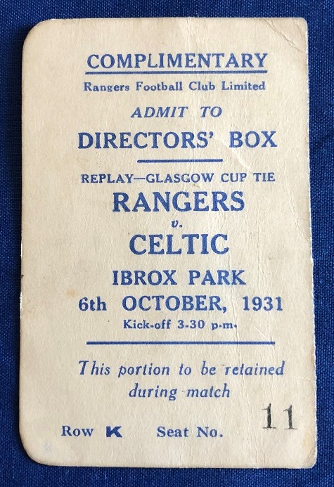 6th October 1931 – Rangers v Celtic – Glasgow Cup Semi-Final replay.