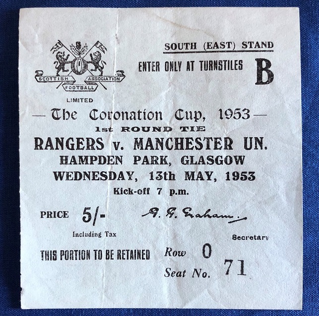 13th May 1953 – Rangers v Manchester United – Coronation Cup.