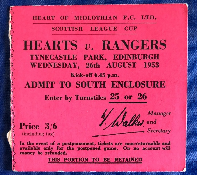 26th August 1953 – Hearts v Rangers – Scottish League Cup.