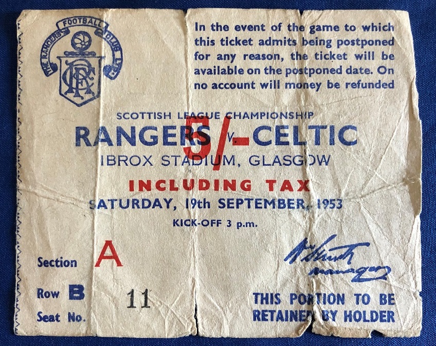 19th September 1953 – Rangers v Celtic – Scottish League.