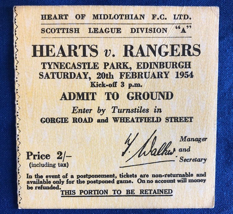 20th February 1954 – Hearts v Rangers – Scottish League.