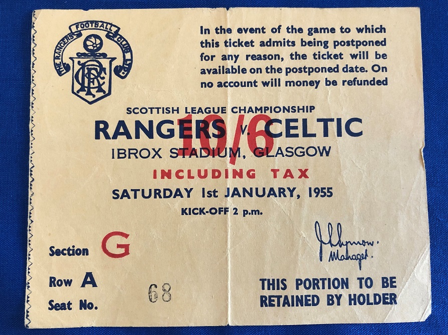 1st January 1955 – Rangers v Celtic – Scottish League.
