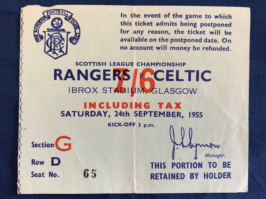 24th September 1955 – Rangers v Celtic – Scottish League.