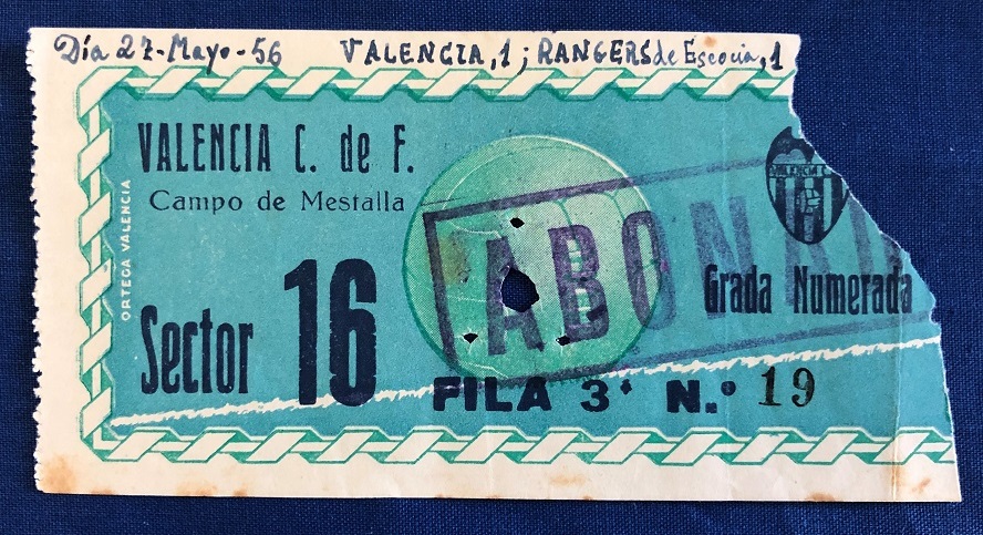 3rd June 1956 – Valencia v Rangers – Friendly.