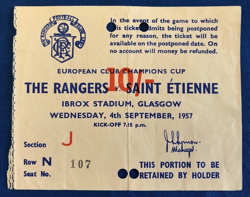 4th September 1957 – Rangers v St. Etienne – European Cup.