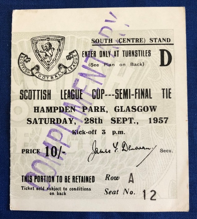 28th September 1957 – Rangers v Brechin City – Scottish League Cup Semi-Final.