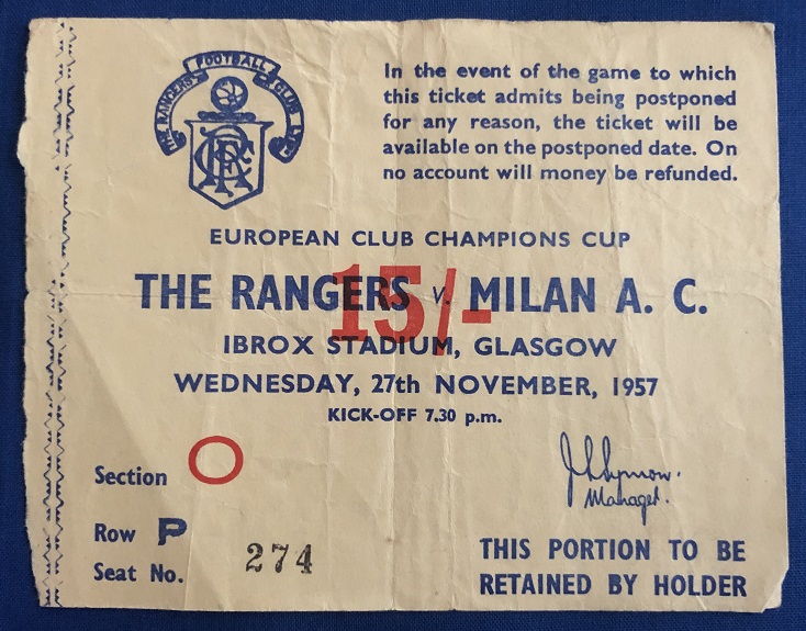 27th November 1957 – Rangers v A.C. Milan – European Cup.