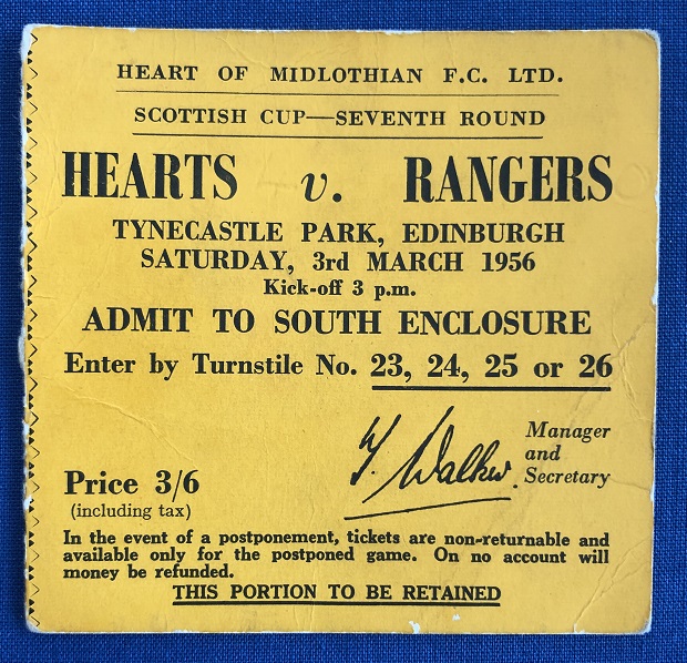 3rd March 1956 – Hearts v Rangers – Scottish Cup.
