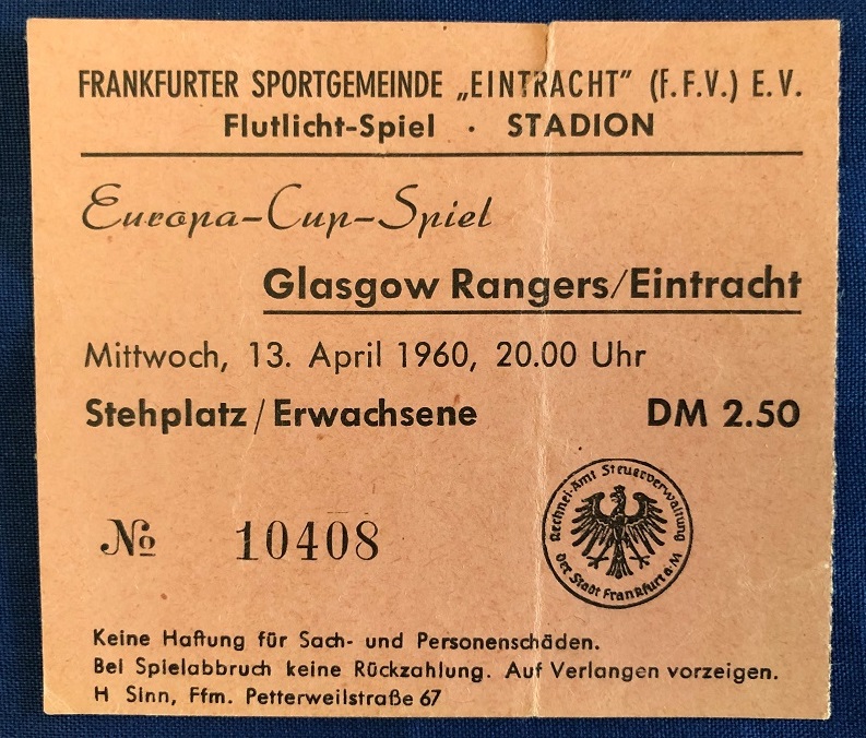 13th April 1960 – Eintracht Frankfurt v Rangers – European Cup Semi-Final 1st Leg