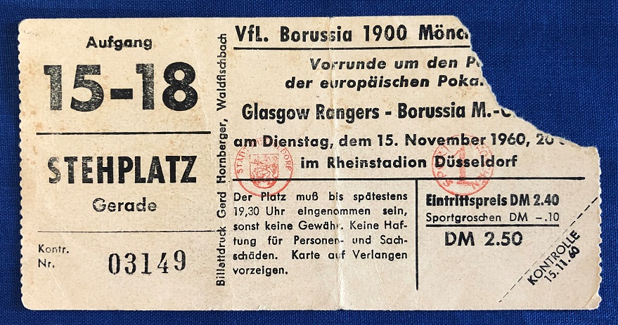 15th November 1960 – Borussia Monchengladbach v Rangers – European Cup Winners Cup