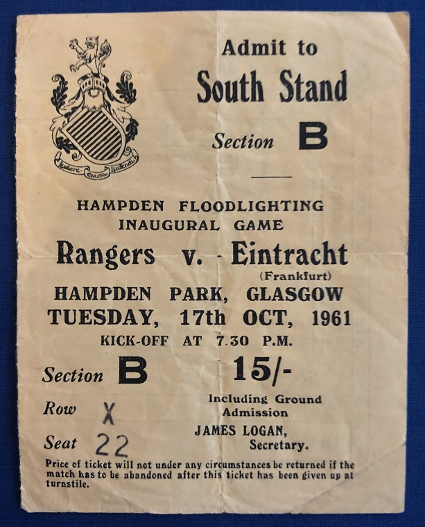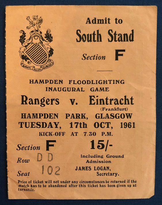 17th October 1961 – Rangers v Eintracht Frankfurt – Friendly