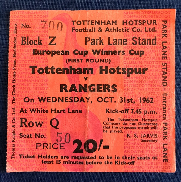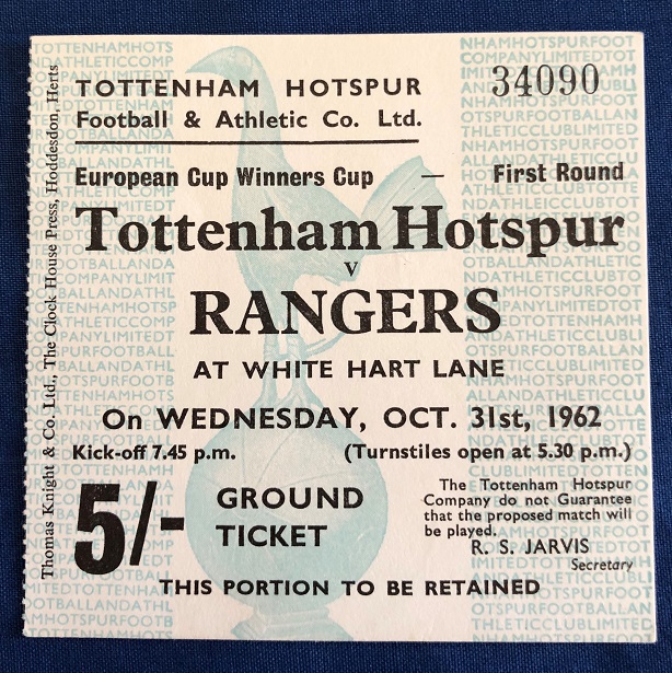 5th December 1962 – Rangers v Tottenham Hotspur – European Cup Winners Cup