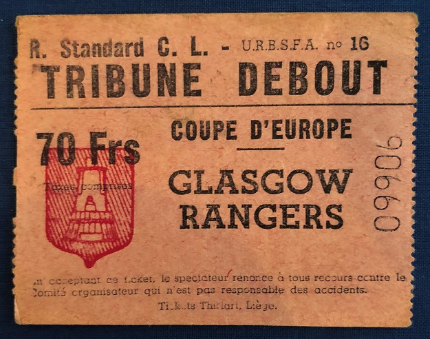 14th February 1962 – Rangers v Standard Liege – European Cup