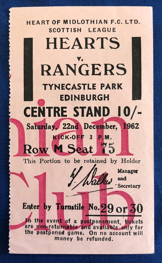 22nd December 1962 – Hearts v Rangers – Scottish League