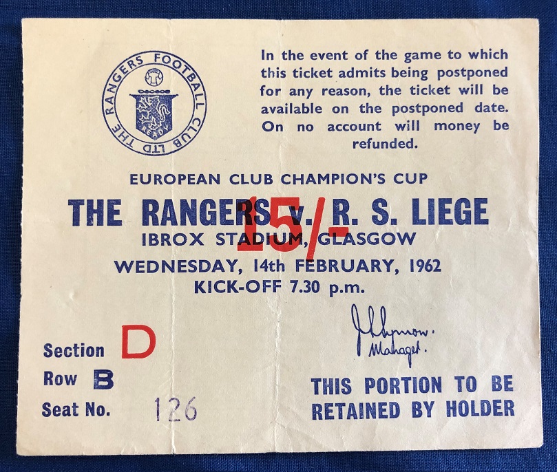 7th February 1962 – Standard Liege v Rangers – European Cup