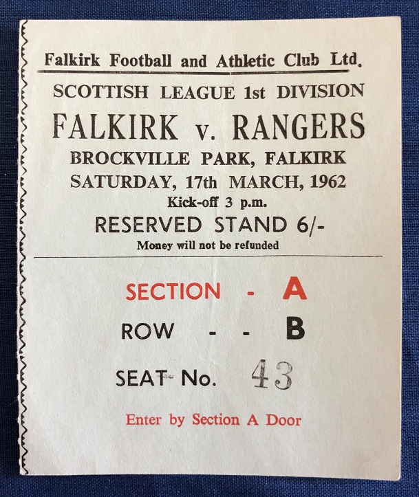 17th March 1962 – Falkirk v Rangers – Scottish League