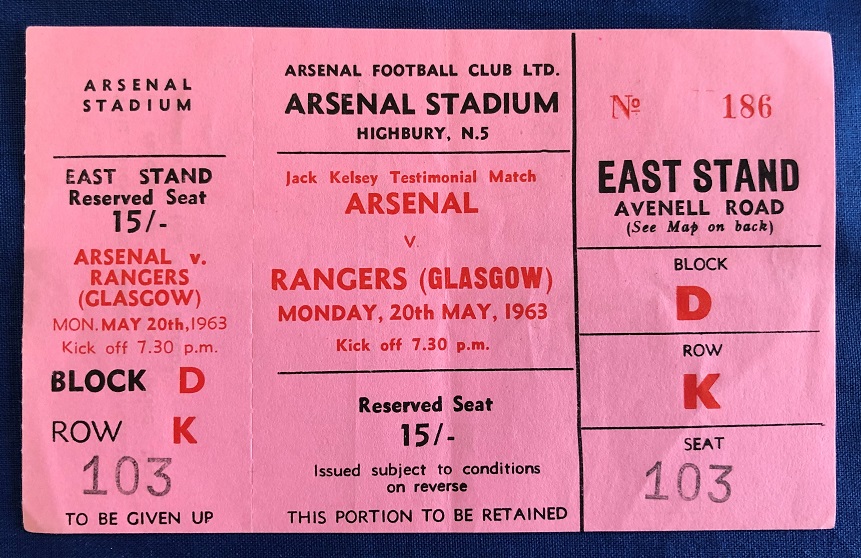 20th May 1963 – Arsenal v Rangers – Jack Kelsey Testimonial
