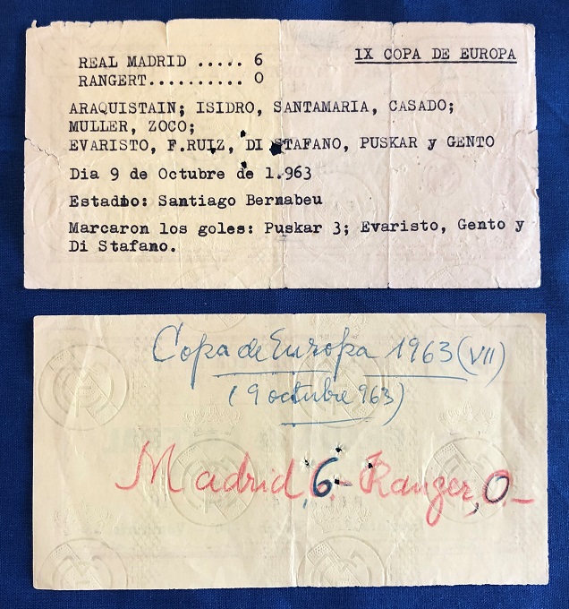 9th October 1963 – Real Madrid v Rangers – European Cup