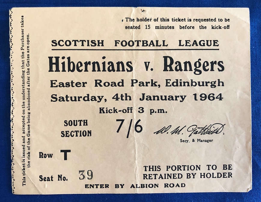 4th January 1964 – Hibernian v Rangers – Scottish League