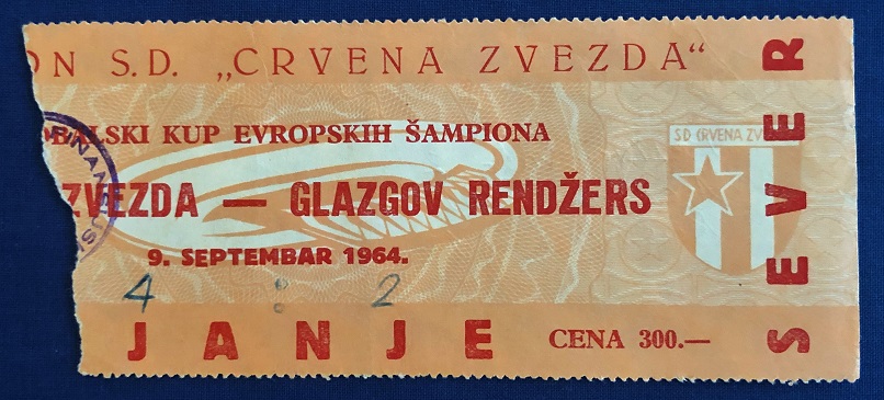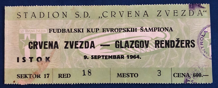 2nd September 1964 – Rangers v Red Star Belgrade – European Cup