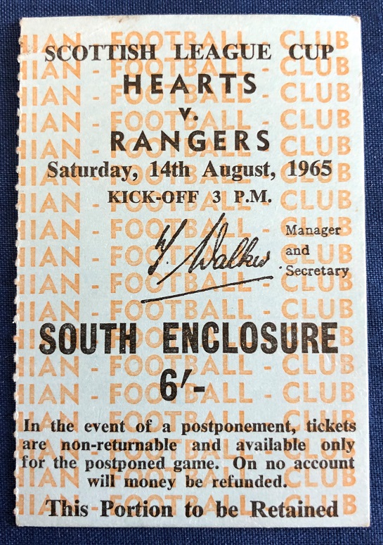 14th August 1965 – Hearts v Rangers – Scottish League Cup