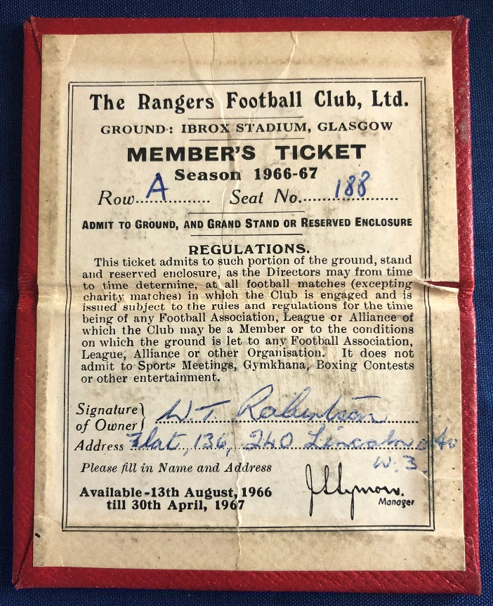 14th September 1966 – Ayr United v Rangers – Scottish League Cup