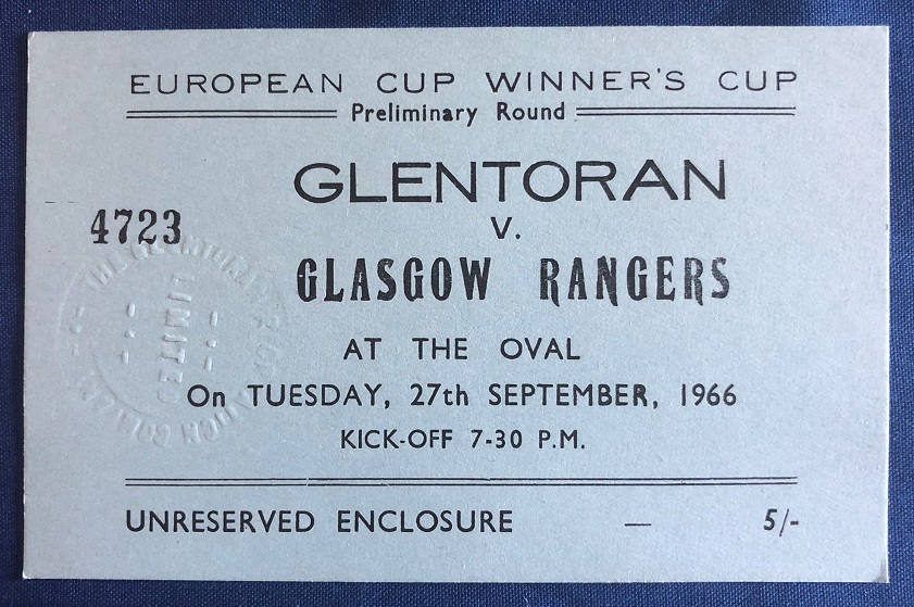 27th September 1966 – Glentoran v Rangers – European Cup Winners Cup