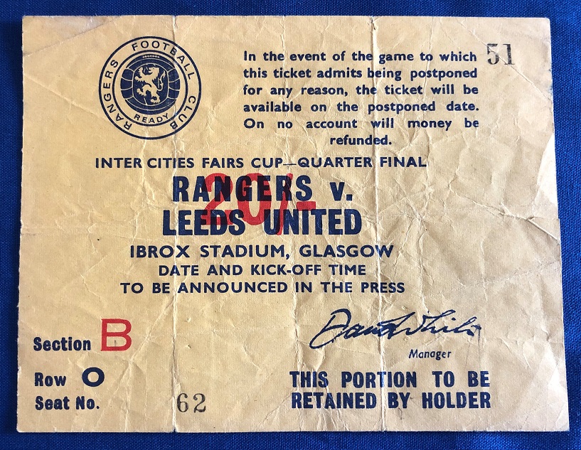 26th March 1968 – Rangers v Leeds United – Inter Cities Fairs Cup