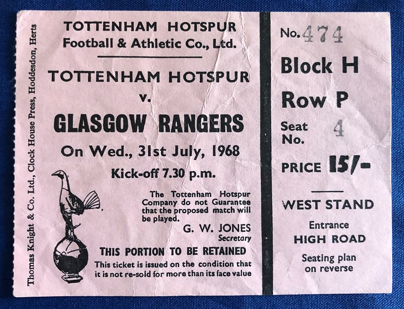 31st July 1968 – Tottenham Hotspur v Rangers – Friendly