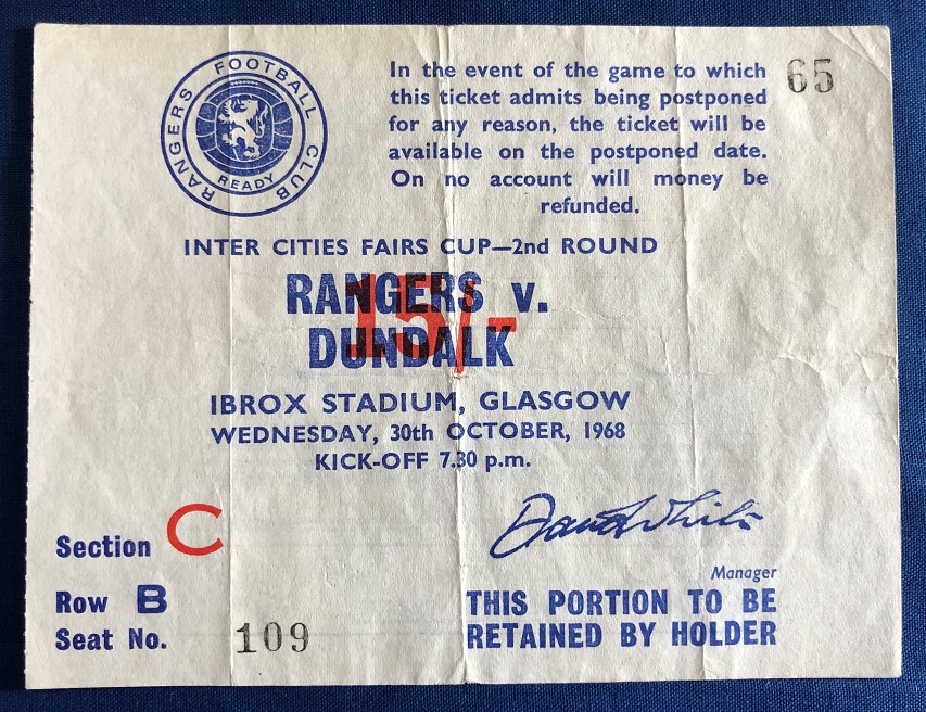 30th October 1968 – Rangers v Dundalk – Inter Cities Fairs Cup