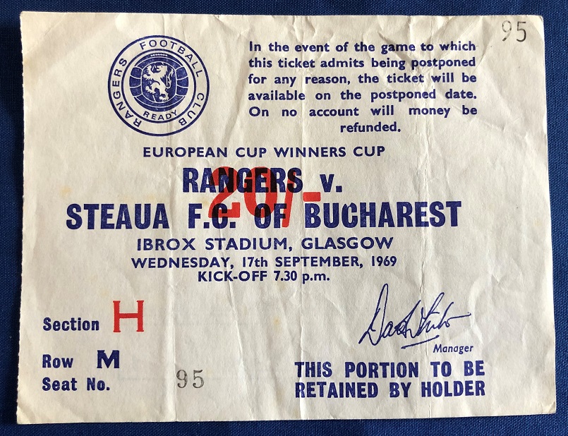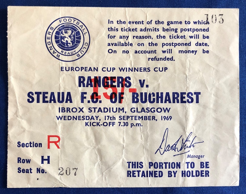 17th September 1969 – Rangers v Steaua Bucharest – European Cup