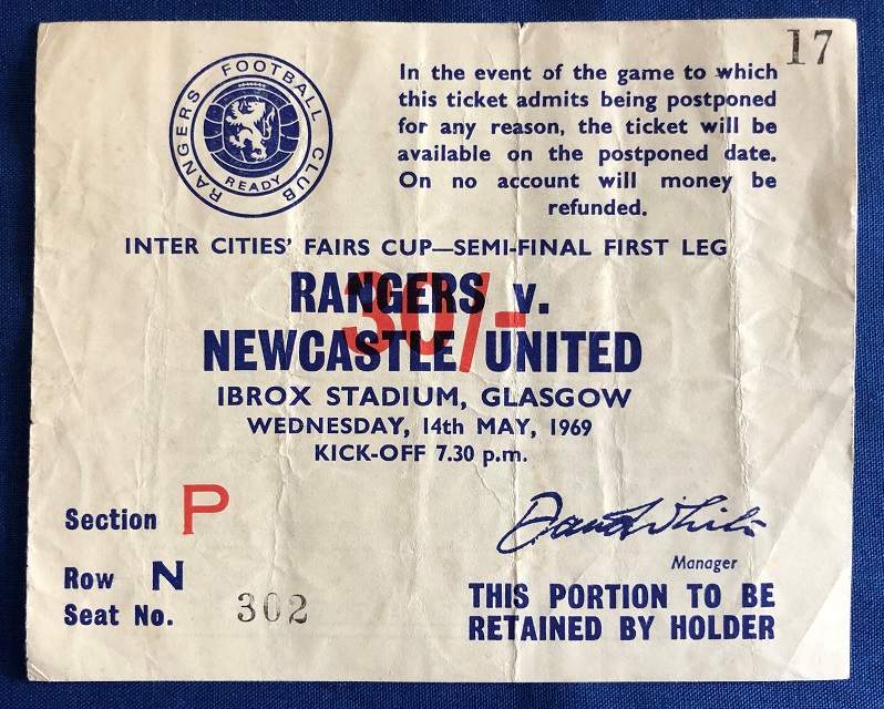 14th May 1969 – Rangers v Newcastle United – Inter Cities Fairs Cup Semi-Final 1st Leg