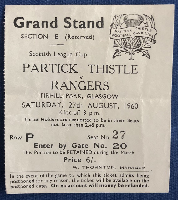 27th August 1960 – Partick Thistle v Rangers – Scottish League Cup