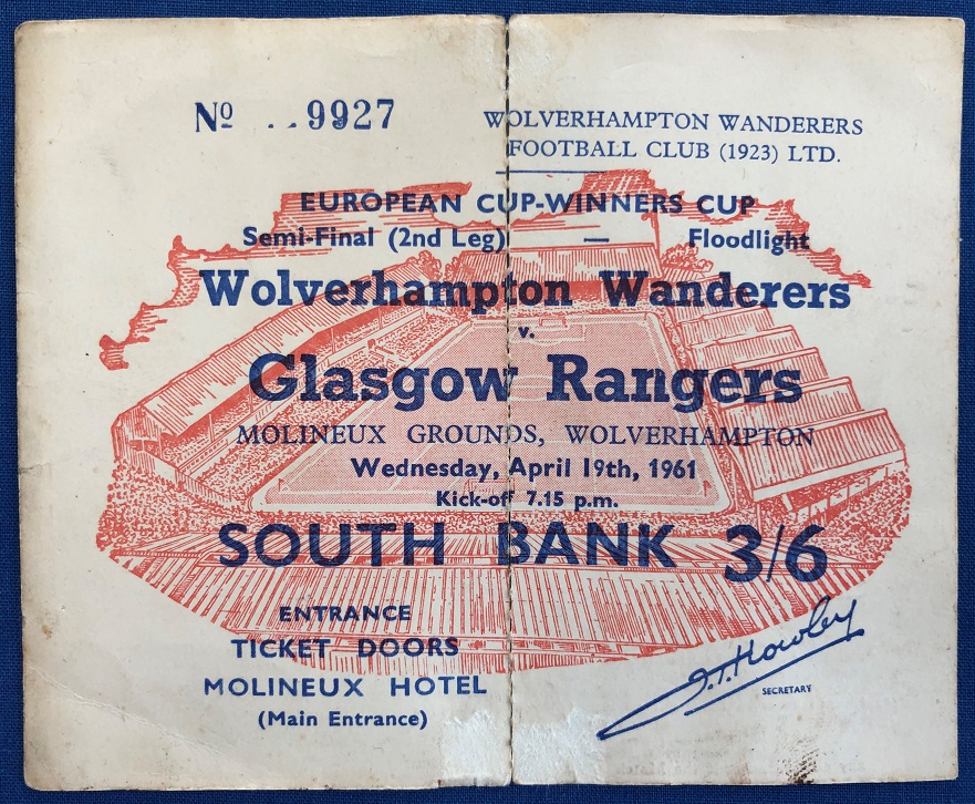 19th April 1961 – Wolverhampton Wanderers v Rangers – European Cup Winners Cup Semi-Final 2nd Leg