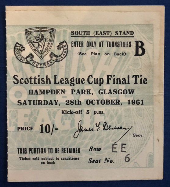 18th December 1961 – Hearts v Rangers – Scottish League Cup Final replay (match was played on the 18th and not on the 4th as stated on the ticket)