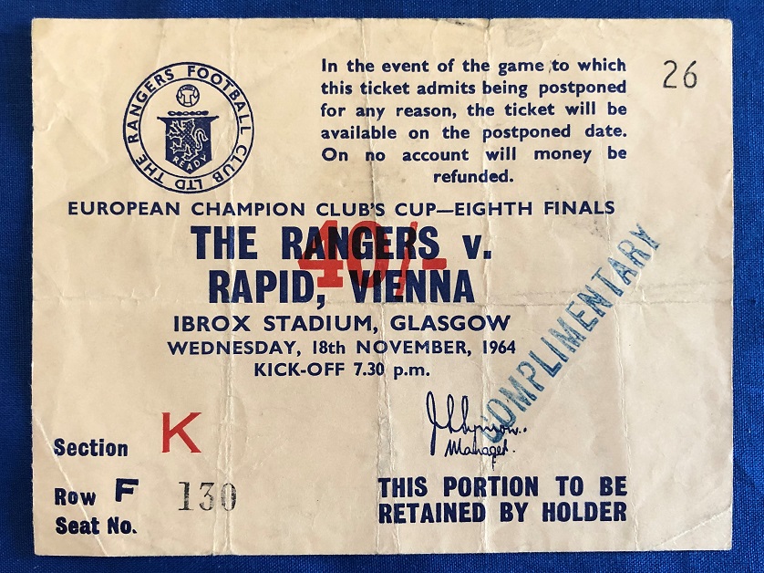 18th November 1964 – Rangers v Rapid Vienna – European Cup