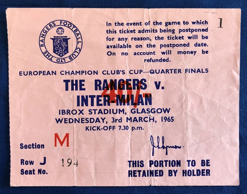 3rd March 1965 – Rangers v Inter Milan – European Cup