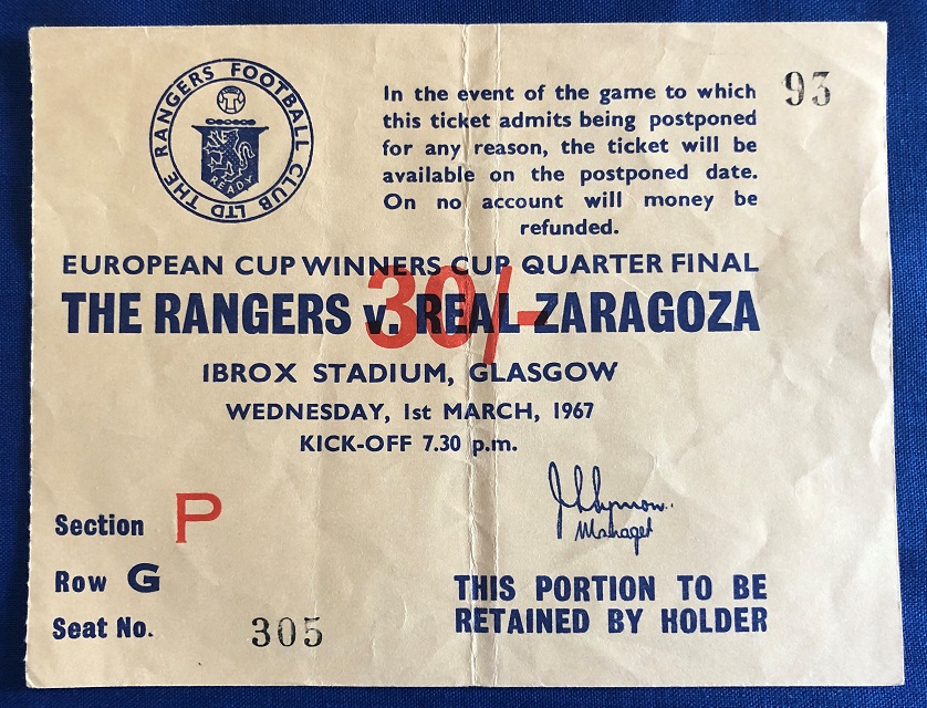 1st March 1967 – Rangers v Real Zaragoza – European Cup Winners Cup